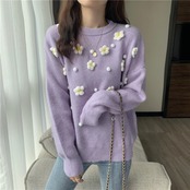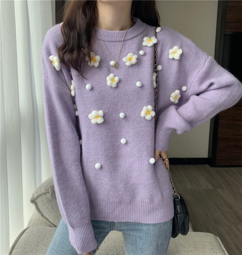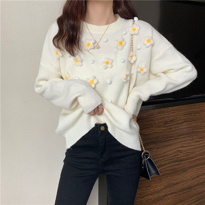 ニット セーターレディースラウンドネック花柄 お花 フラワー長袖 長そでスリーブ 袖 ロング マキシロング丈 マキシ丈 かわいい 可愛い ガーリー 大人可愛い 大人かわいい フェミニン 大人ガーリー ステッチ 女性 レディース ゆめかわ44117502755 | nice import1