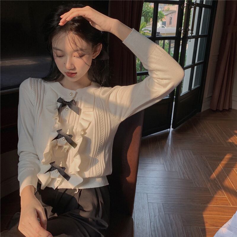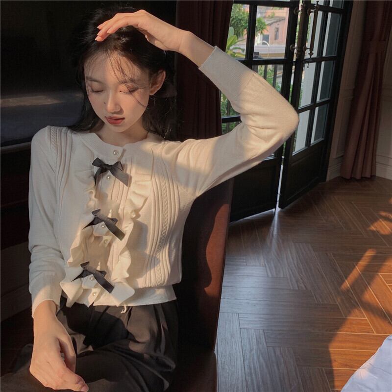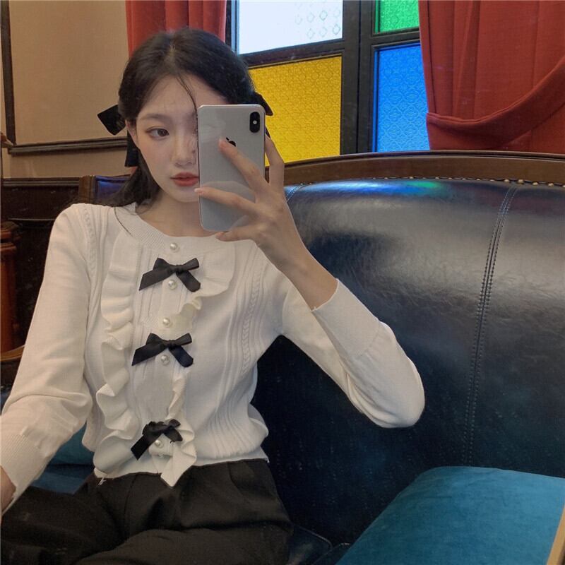 プルオーバー ニット セーターホワイト 白ルーズニットトップス レディース リボン かわいい 可愛い ガーリー 大人可愛い 大人かわいい フェミニン 大人ガーリー 女性 レディース ゆめかわ4509175301 | nice import1