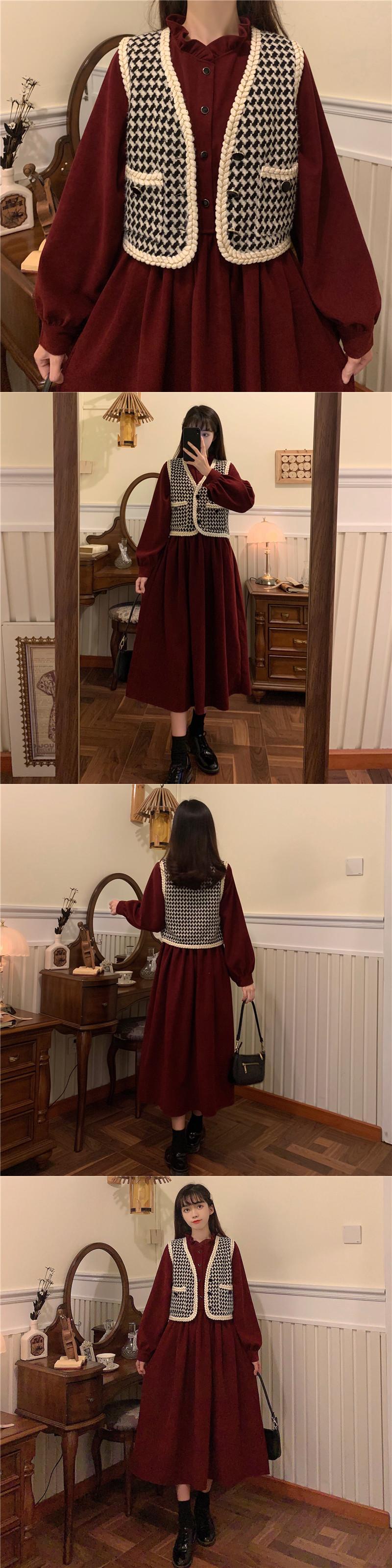 色:ワインレッドワンピース,黒のワンピース,ブラックベストワンピース