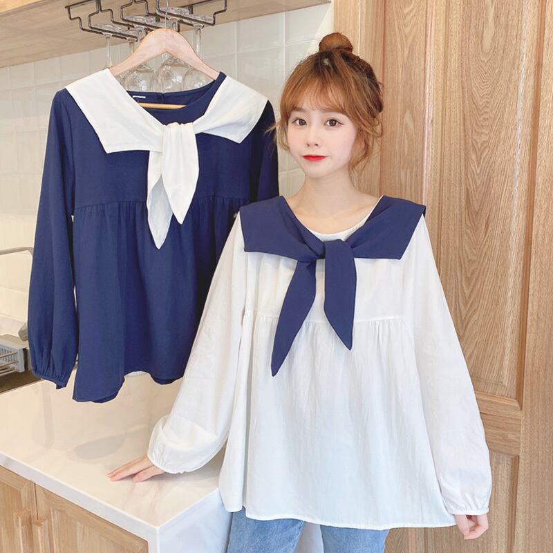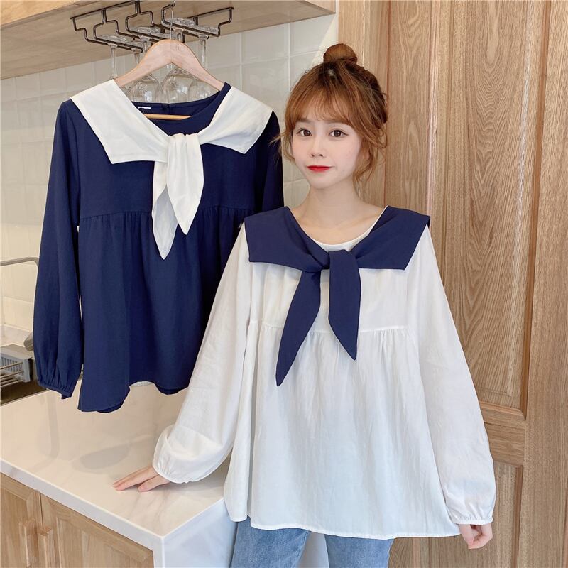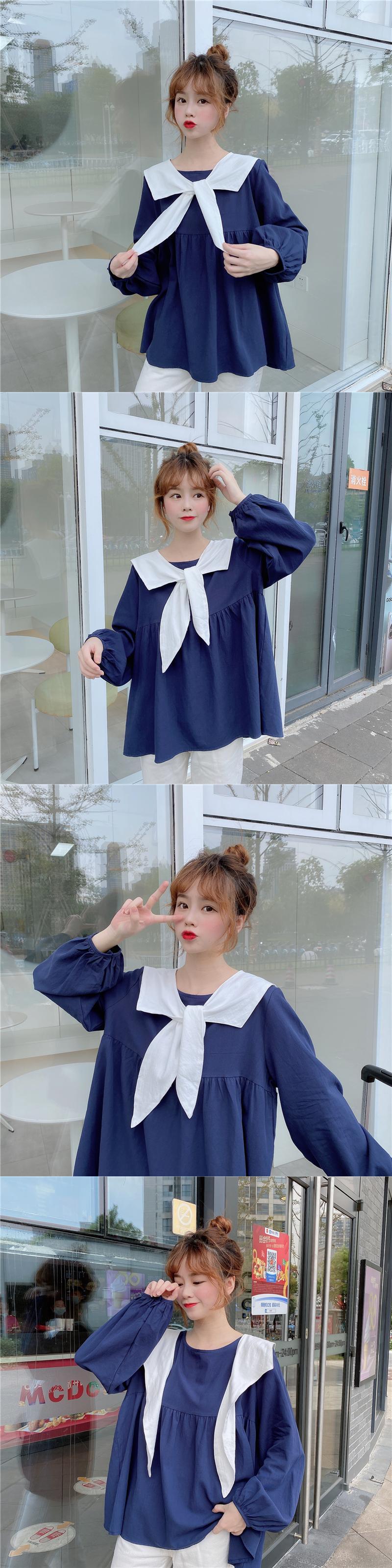 ネイビー 紺色スタイルルーズ薄手シャツ ソリッド カラー長袖 長そでスリーブ 袖 ロング マキシロング丈 マキシ丈 ソリッドカラー 女性 レディース ゆめかわ27923899033 | nice import1