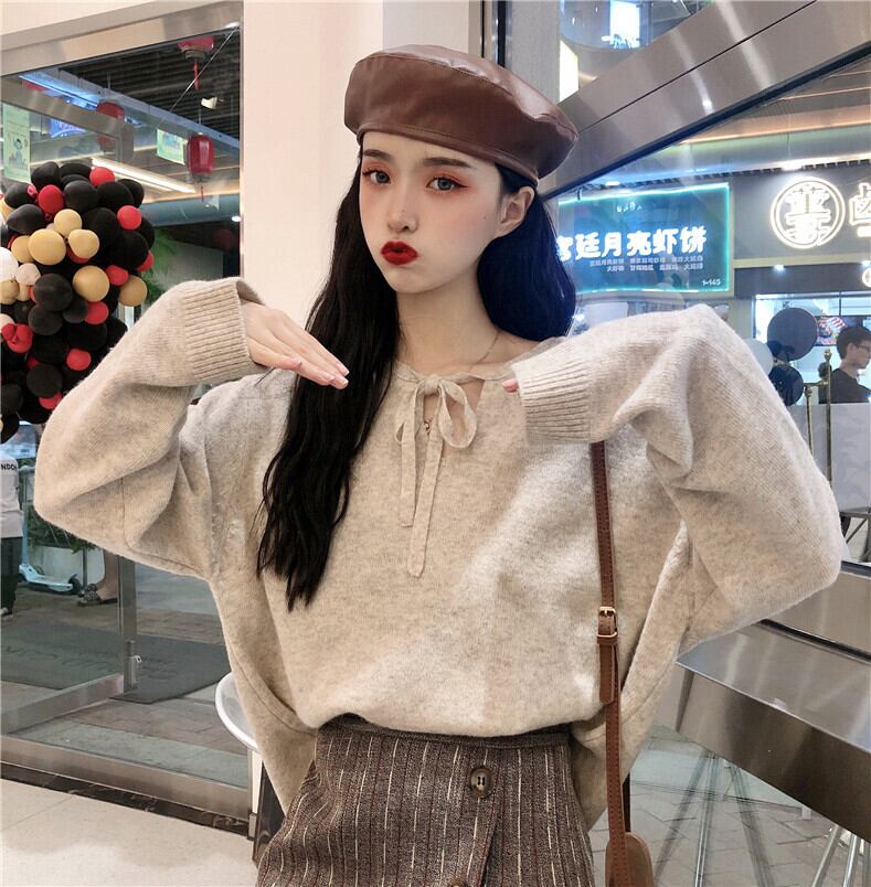 リボンVネックルーズニットニット セータープルオーバー トップス ロング マキシロング丈 マキシ丈 かわいい 可愛い ガーリー 大人可愛い 大人かわいい フェミニン 大人ガーリー 女性 レディース ゆめかわ4876903970 | nice import1