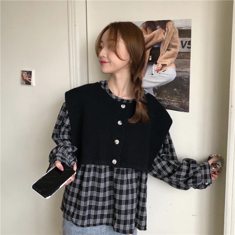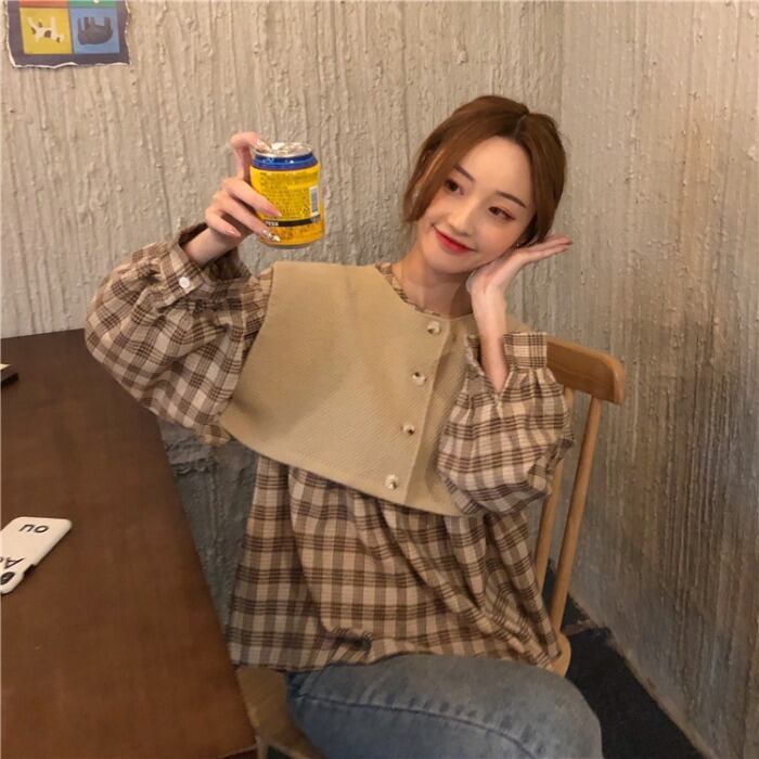シャツ スタンダードルーズ格子柄 チェックブラウス ショート ショート丈 ミニ ミニ丈ニット ロング マキシロング丈 マキシ丈 レトロ トップス 女性 レディース ゆめかわ29214186471 | nice import1