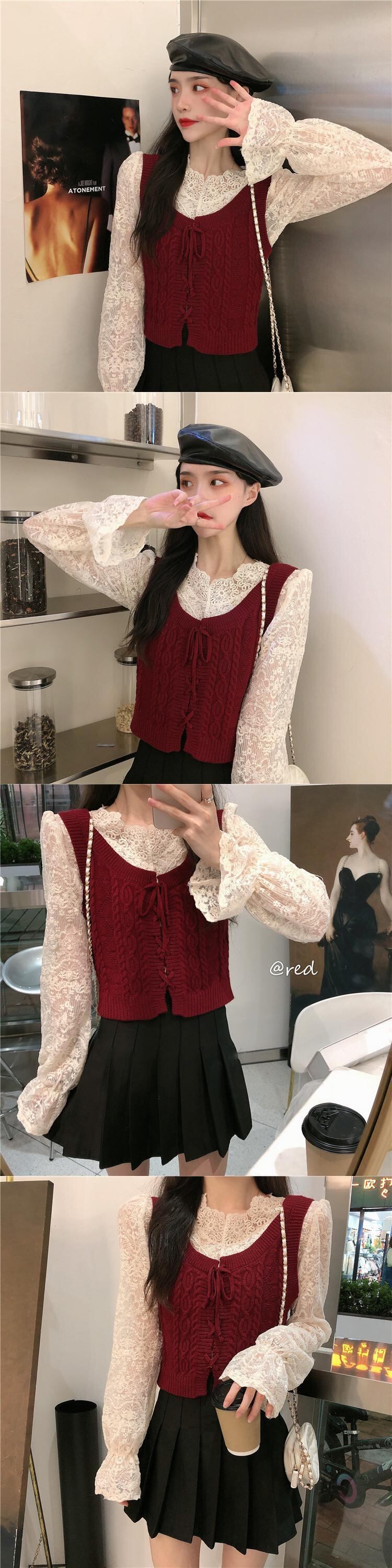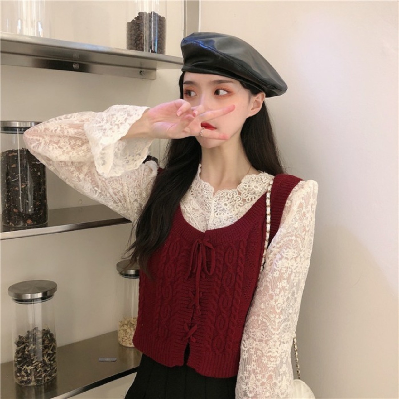 色:オフホワイトベストシングルピース,ブラックベストワンピース,赤いベストシングル,ブラウンベストワンピース,オフホワイトのレースシャツワンピース