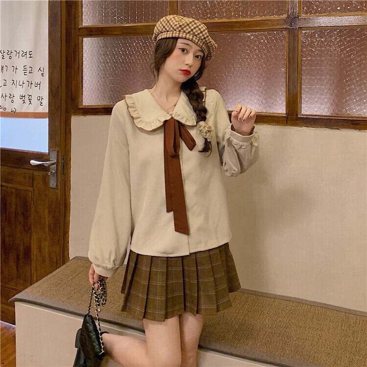 色:アプリコットシャツワンピース,コーヒーカラーのショートスカートワンピース,カーキセーターシングル