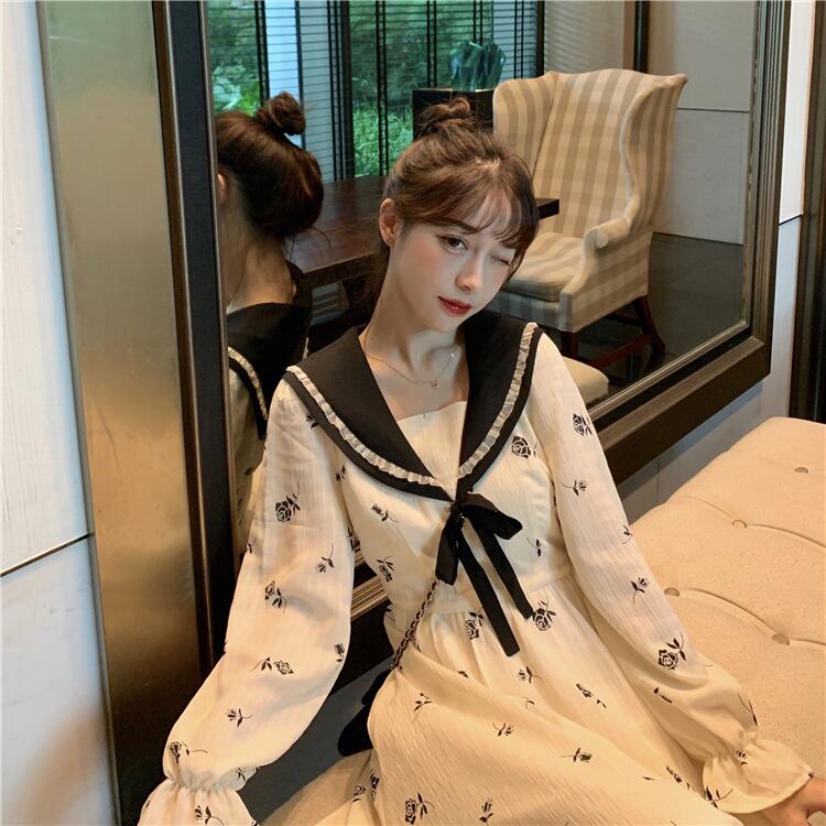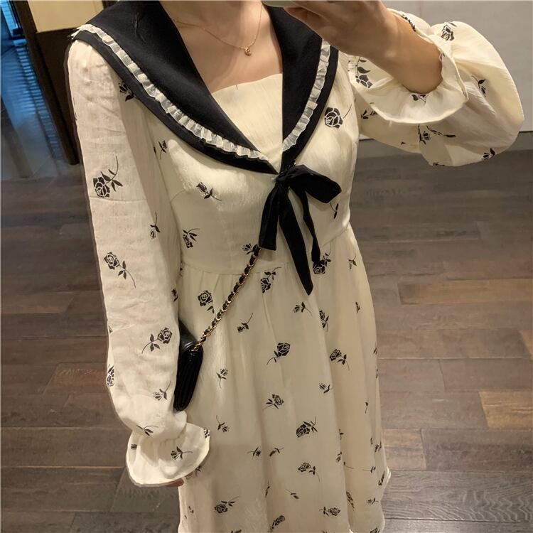 スカート ネイビー 紺色リボン長袖 長そでスリーブ 袖ハイウエストウエスト花柄 お花 フラワードレス ワンピース ハイウェスト ロング マキシロング丈 マキシ丈 かわいい 可愛い ガーリー 大人可愛い 大人かわいい フェミニン 大人ガーリー 女性 レディース ゆめかわ28933608812 | nice import1