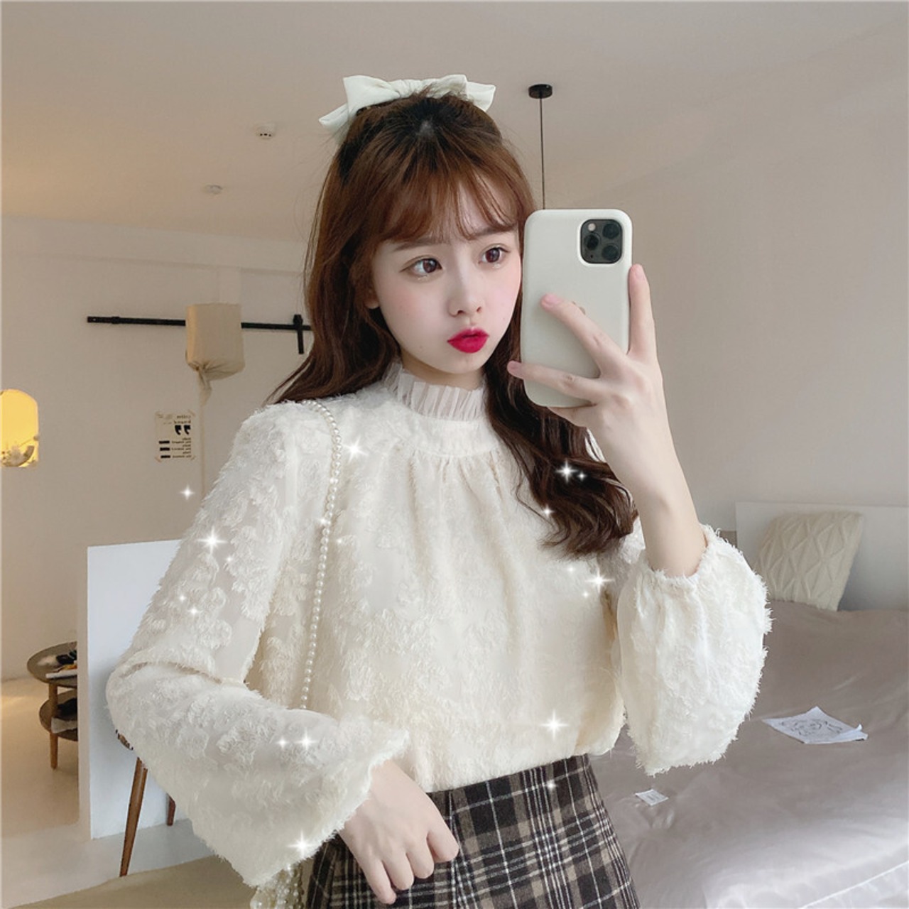 スタイルメッシュ レース シースルー チュール オーガンジースタンドカラーカラースリーブ 袖シャツ レディース ランタンスリーブ バルーンスリーブ ランタン袖 バルーン袖 女性 レディース ゆめかわ32357379773 | nice import1