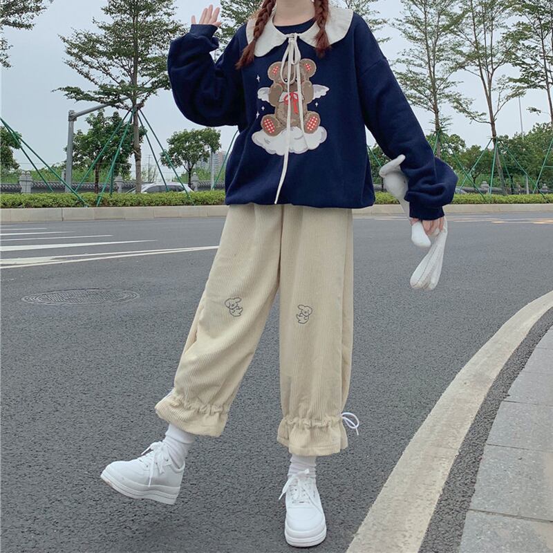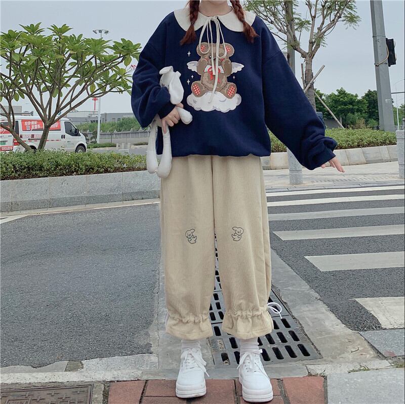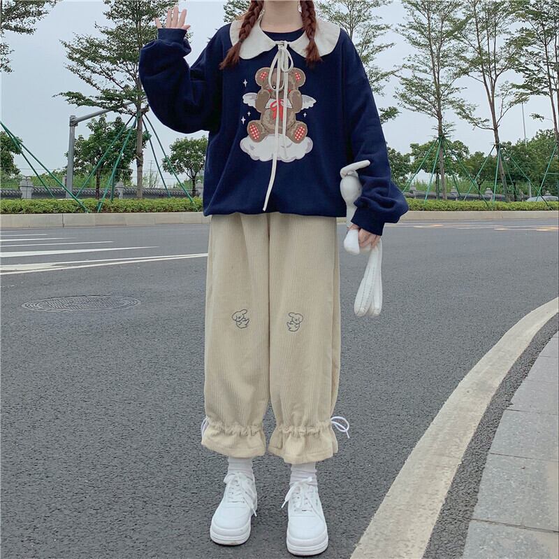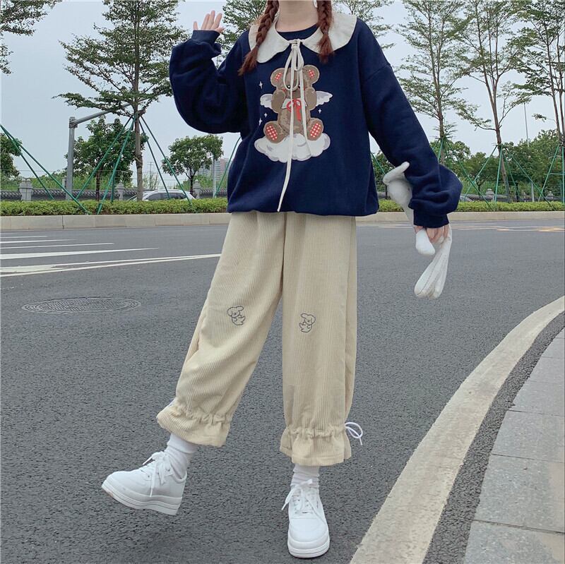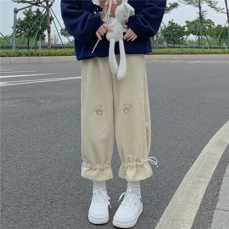 ルーズスタンダードコーデュロイギャザーパンツ 刺繍ハイウエストカジュアル レトロ かわいい 可愛い ガーリー 大人可愛い 大人かわいい フェミニン 大人ガーリー 女性 レディース ゆめかわ50979975557 | nice import1