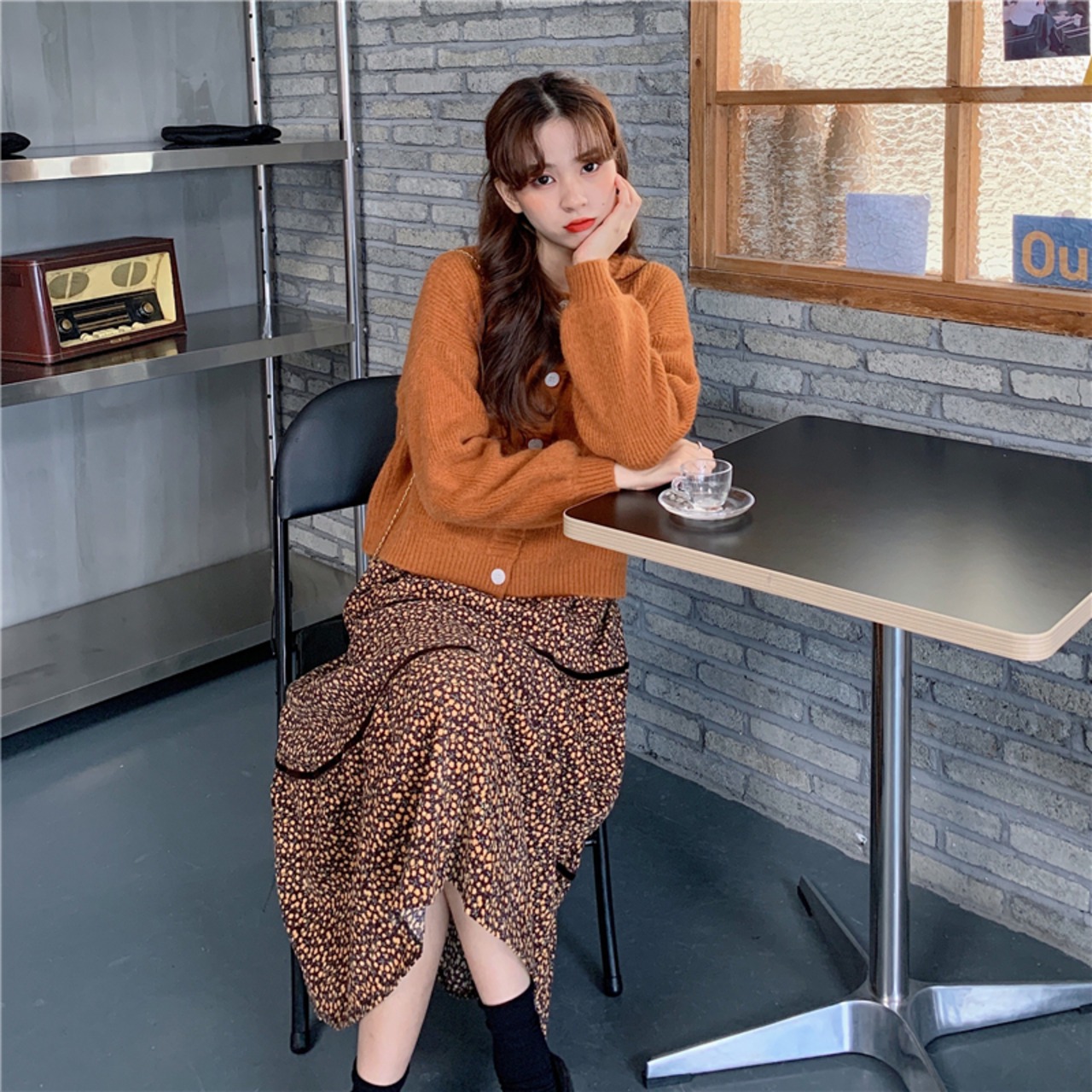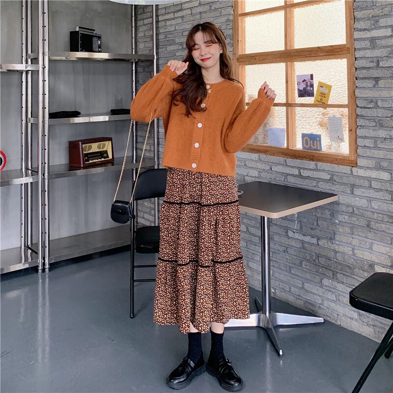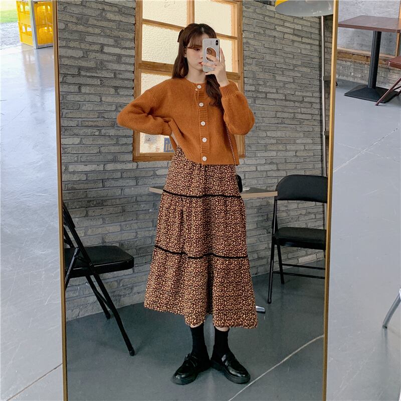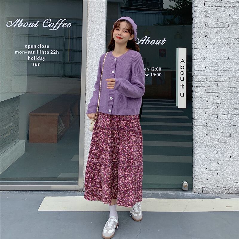 色:カーキセーターシングル,パープルセーターシングル,イエローフローラルスカートワンピース,パープルフローラルスカートシングルピース