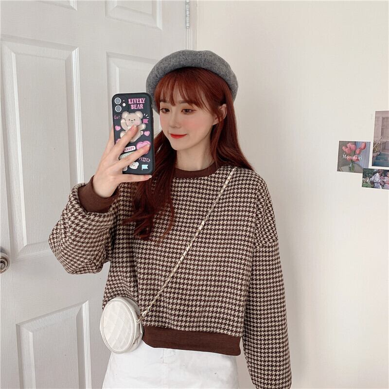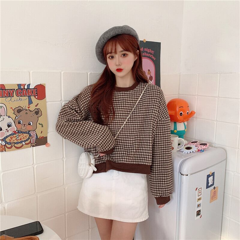 ニット セーターレディーススタイルショート ショート丈 ミニ ミニ丈長袖 長そでスリーブ 袖格子柄 チェックトップス ロング マキシロング丈 マキシ丈 女性 レディース ゆめかわ58372203585 | nice import1