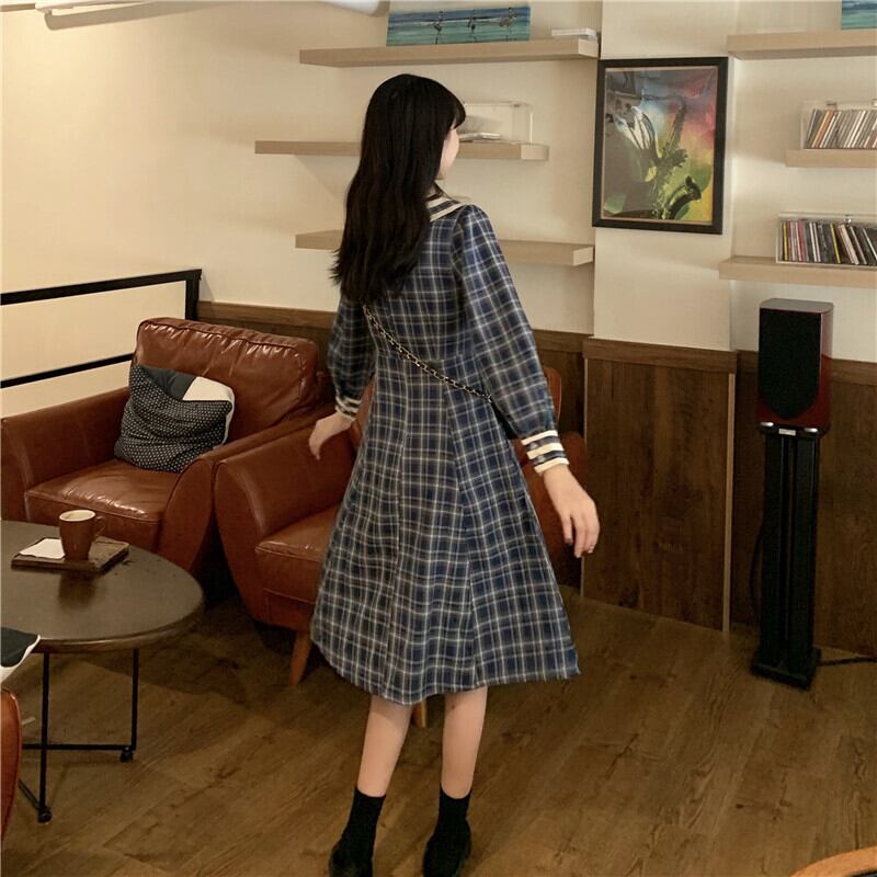 スタイルスリーブ 袖ドレス ワンピースカラーネイビー 紺色リボン格子柄 チェックスカート ロング マキシロング丈 マキシ丈 ランタンスリーブ バルーンスリーブ ランタン袖 バルーン袖 かわいい 可愛い ガーリー 大人可愛い 大人かわいい フェミニン 大人ガーリー 女性 レディース ゆめかわ32635860529 | nice import1