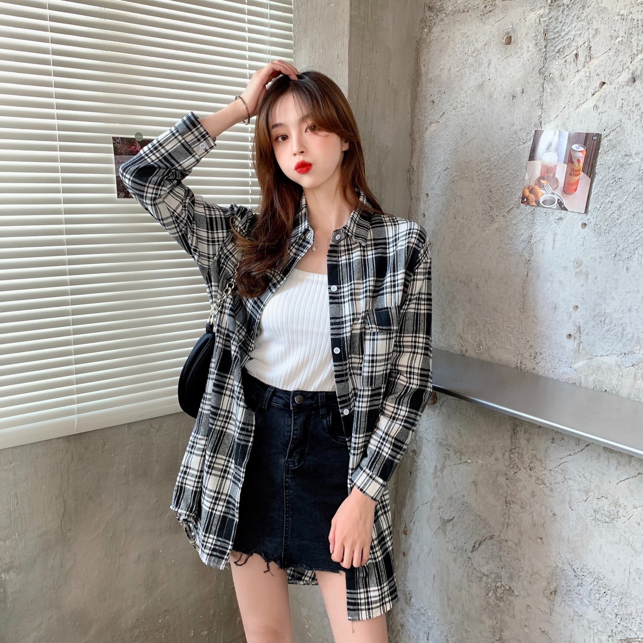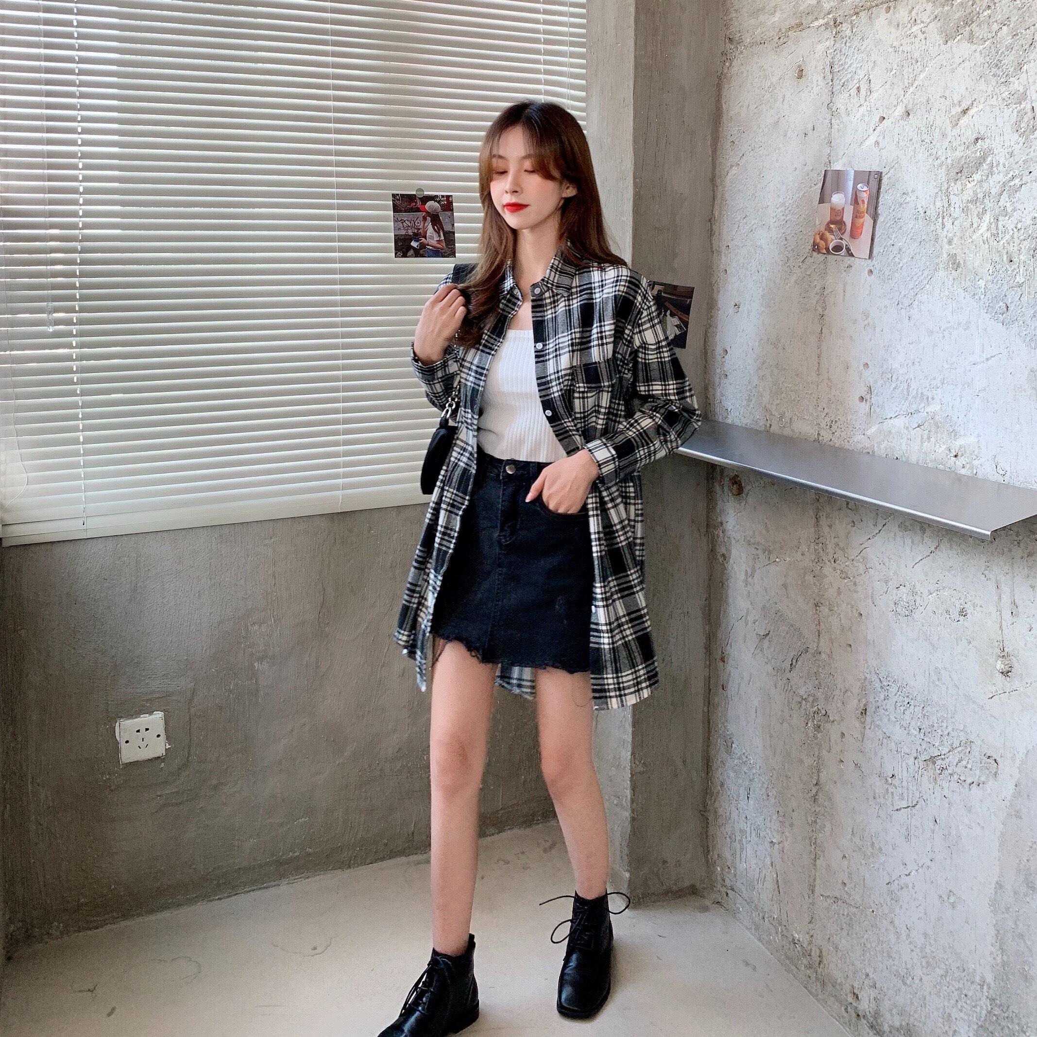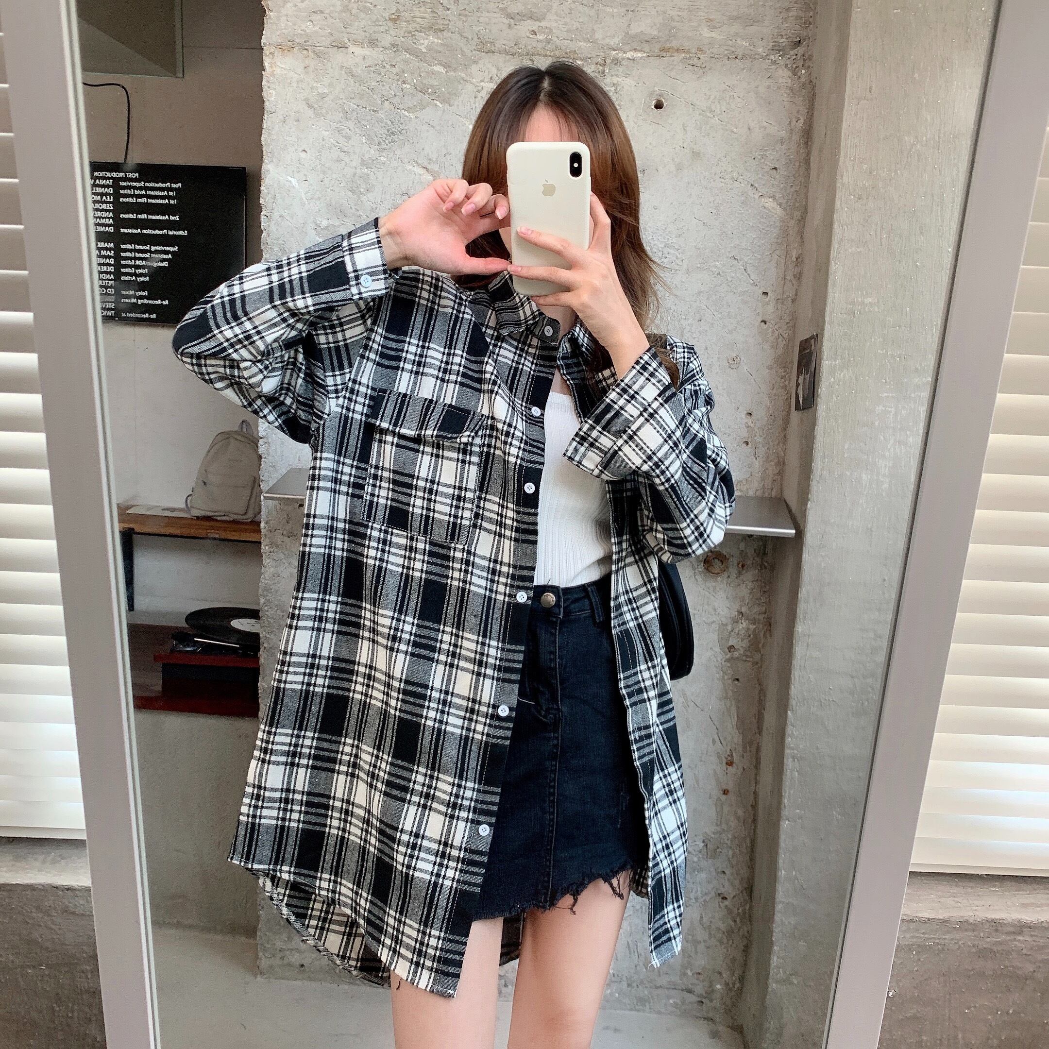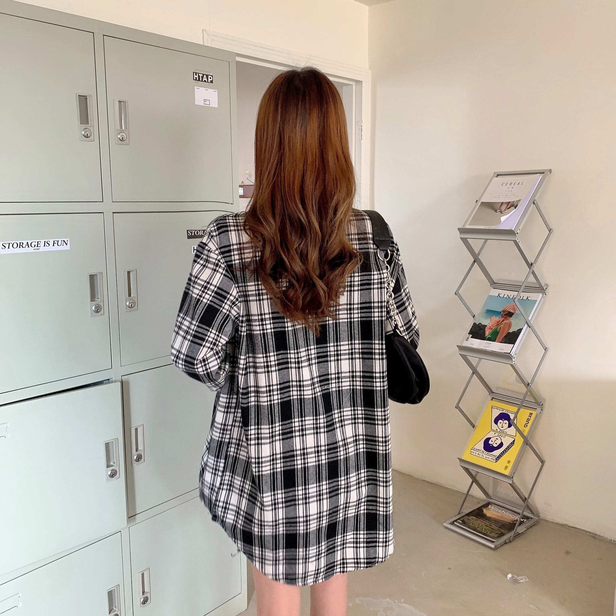 ルーズスタンダードカラー長袖 長そでスリーブ 袖格子柄 チェックシャツ ジャケット 上着 コートレディースニットセット ロング マキシロング丈 マキシ丈 レトロ 女性 レディース ゆめかわ64563755313 | nice import1