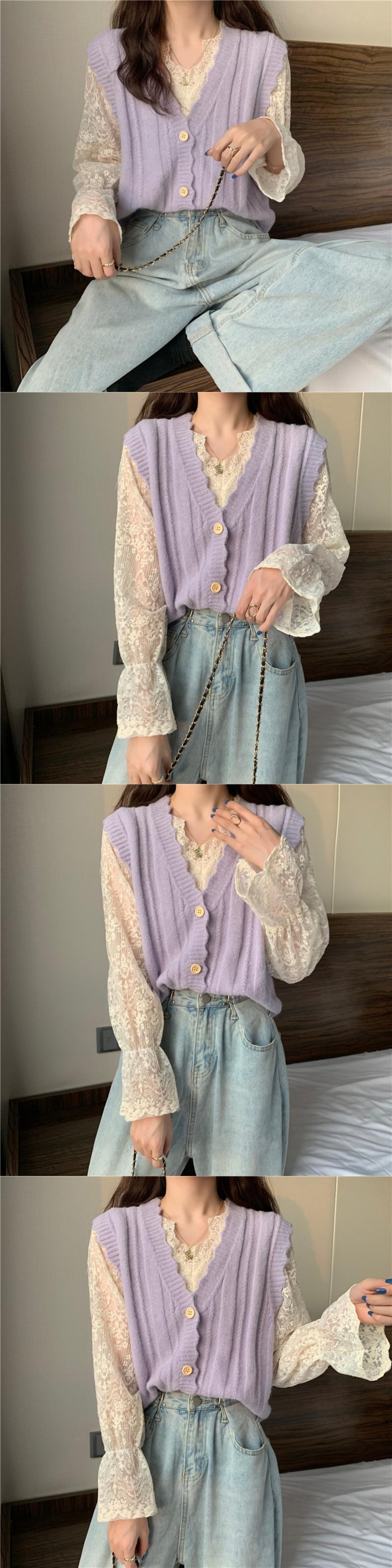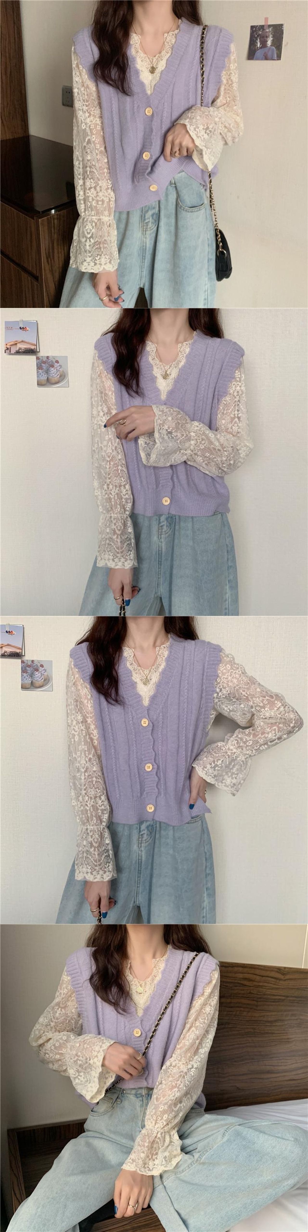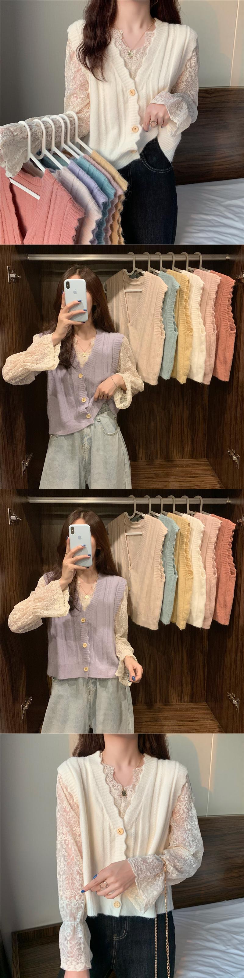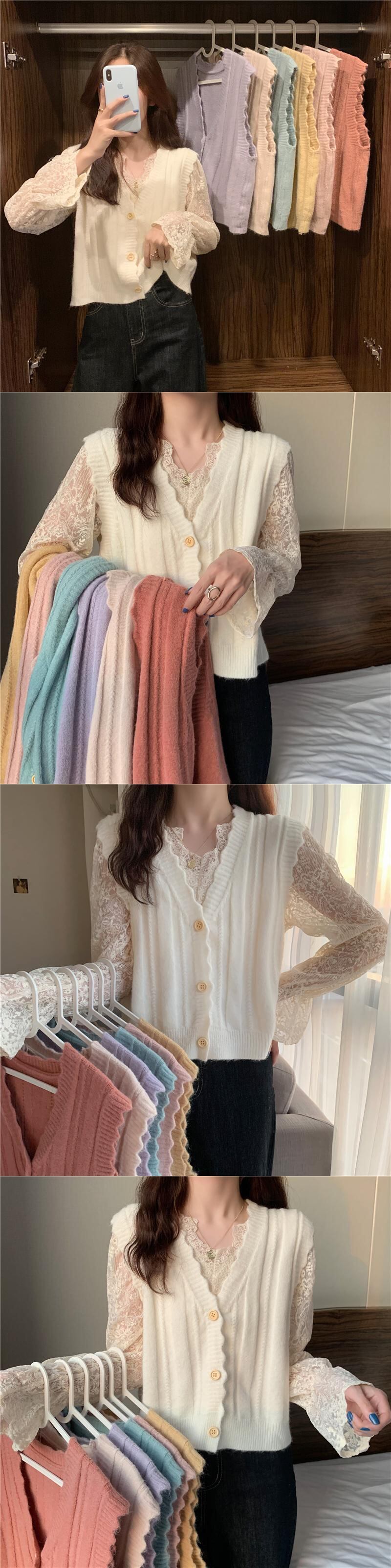 ニットレースVネックカーディガン 上着ショート ショート丈 ミニ ミニ丈ノースリーブレディース 半袖 半そで ハーフスリーブ かわいい 可愛い ガーリー 大人可愛い 大人かわいい フェミニン 大人ガーリー 袖なし 女性 レディース ゆめかわ35257132060 | nice import1
