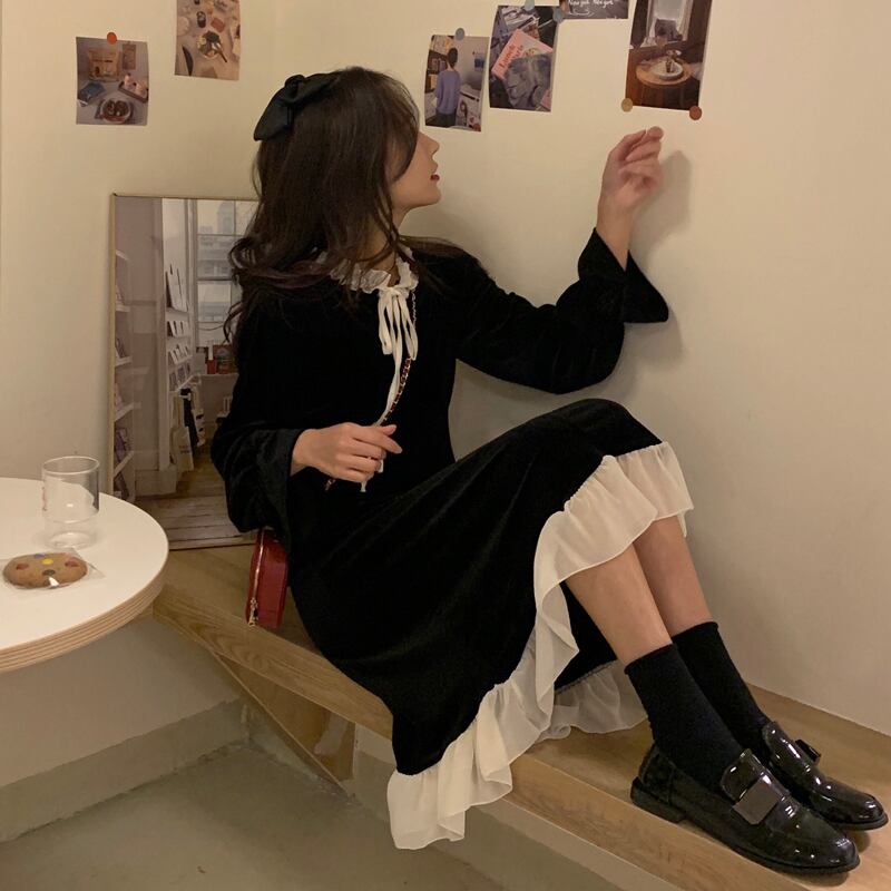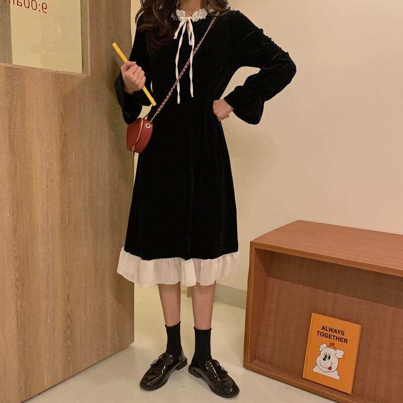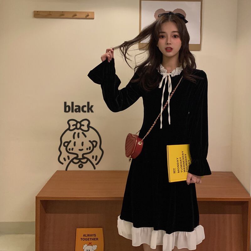 レースラウンドネックブラック 黒ベルベットラッフル フリルドレス ワンピース レッド 赤 かわいい 可愛い ガーリー 大人可愛い 大人かわいい フェミニン 大人ガーリー 女性 レディース ゆめかわ77255054528 | nice import1