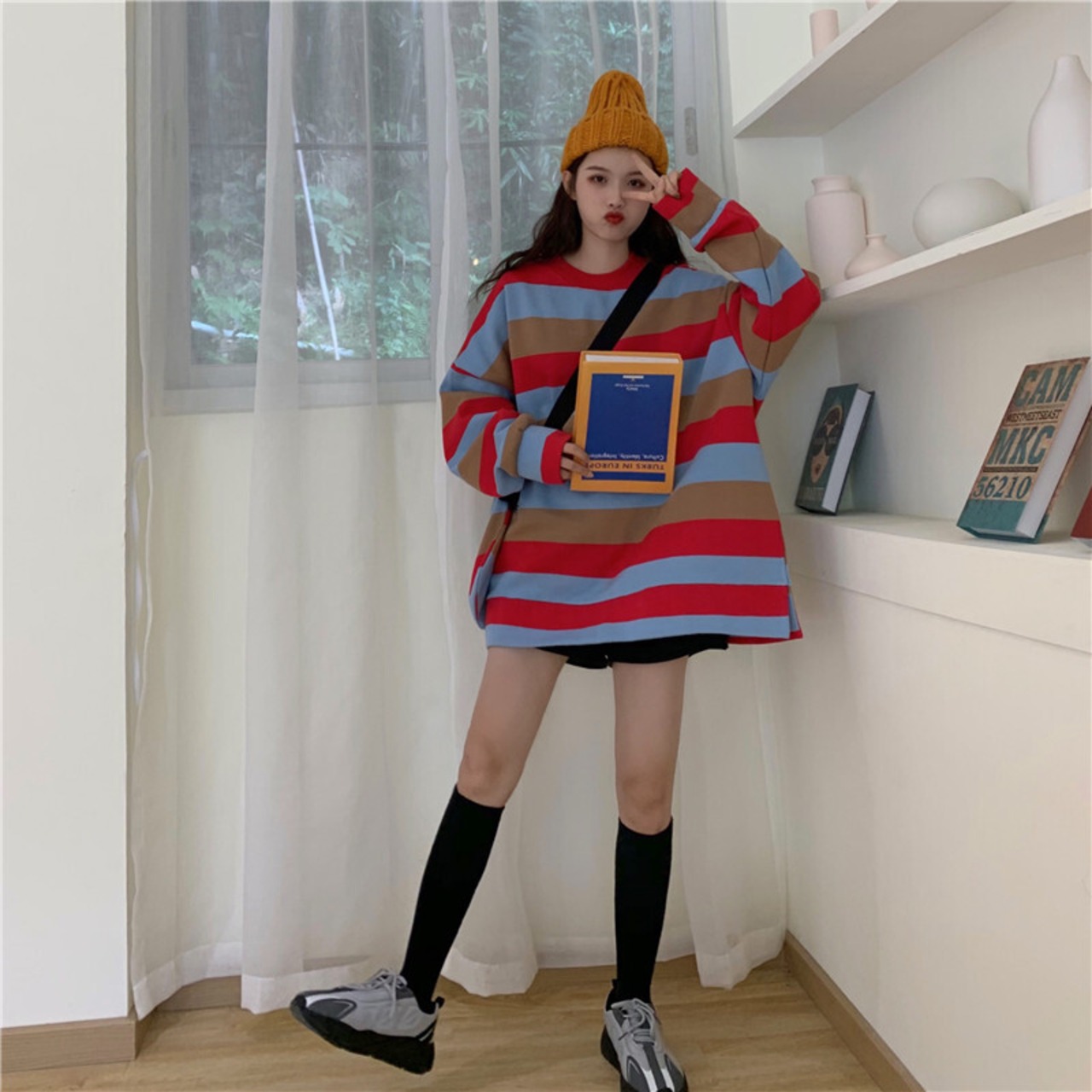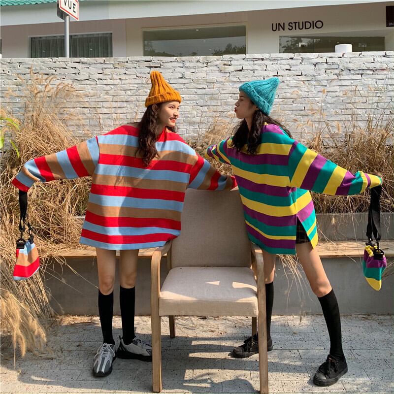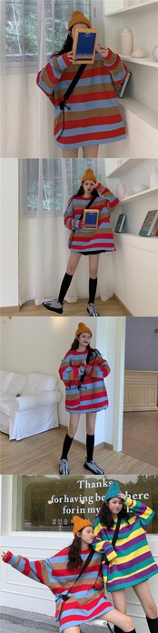 ドレス ワンピースルーズスタンダードスタイルプルオーバー ストライプニット セーター ロング マキシロング丈 マキシ丈 レトロ 女性 レディース ゆめかわ46938095457 | nice import1
