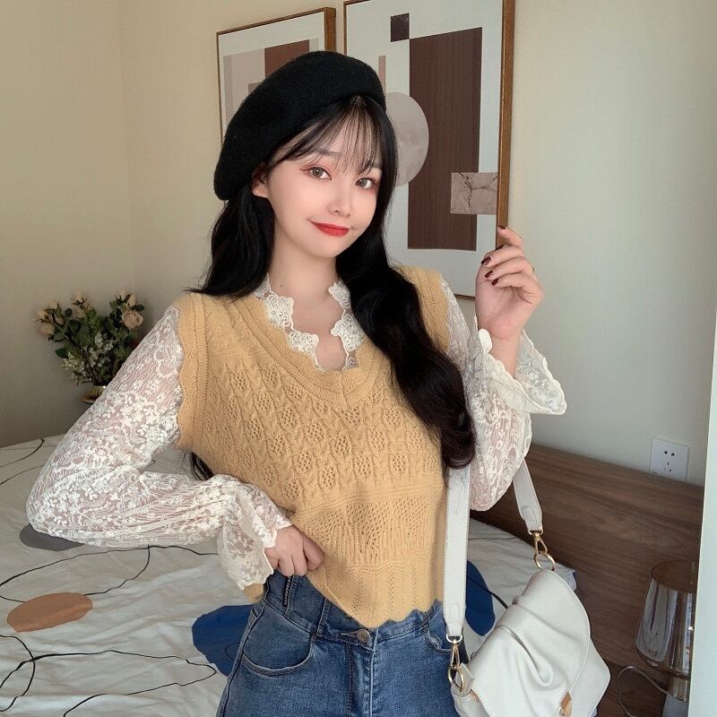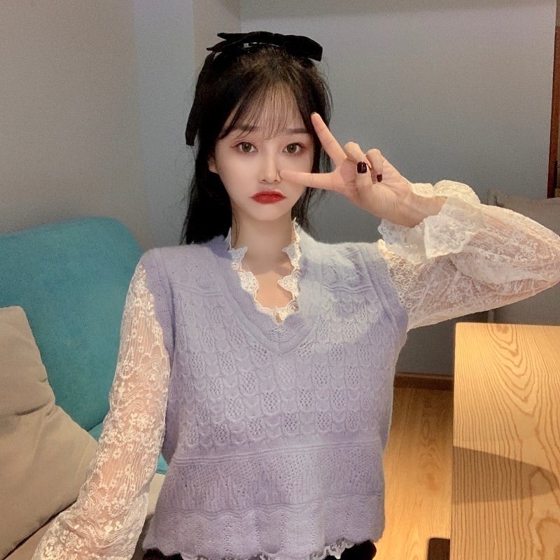 Vネックレースシャツ ニットノースリーブニット セーターカーディガン 上着 かわいい 可愛い ガーリー 大人可愛い 大人かわいい フェミニン 大人ガーリー 袖なし 女性 レディース ゆめかわ31213242851 | nice import1