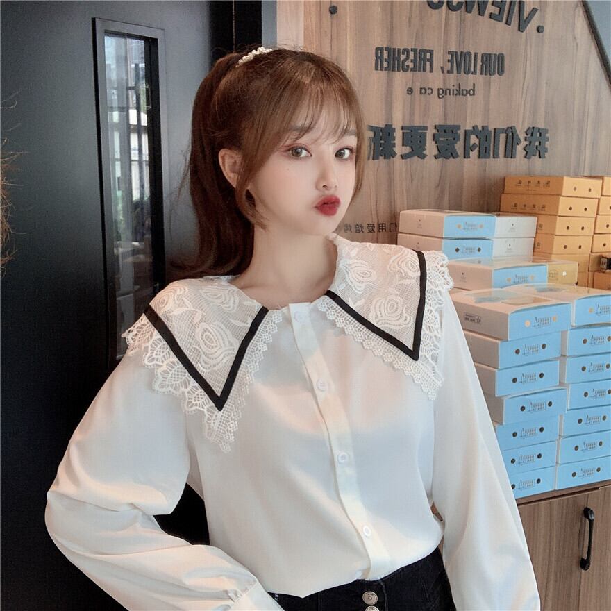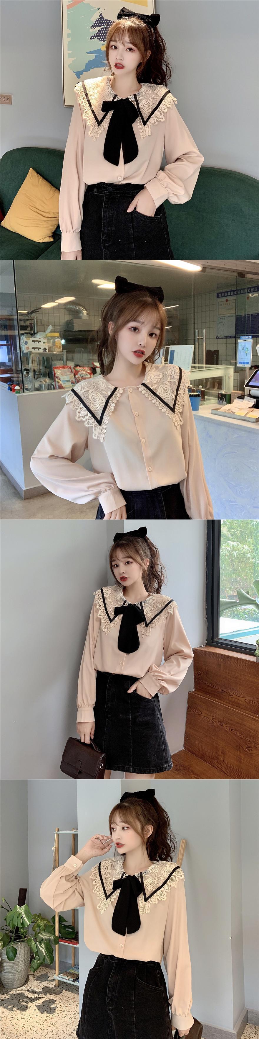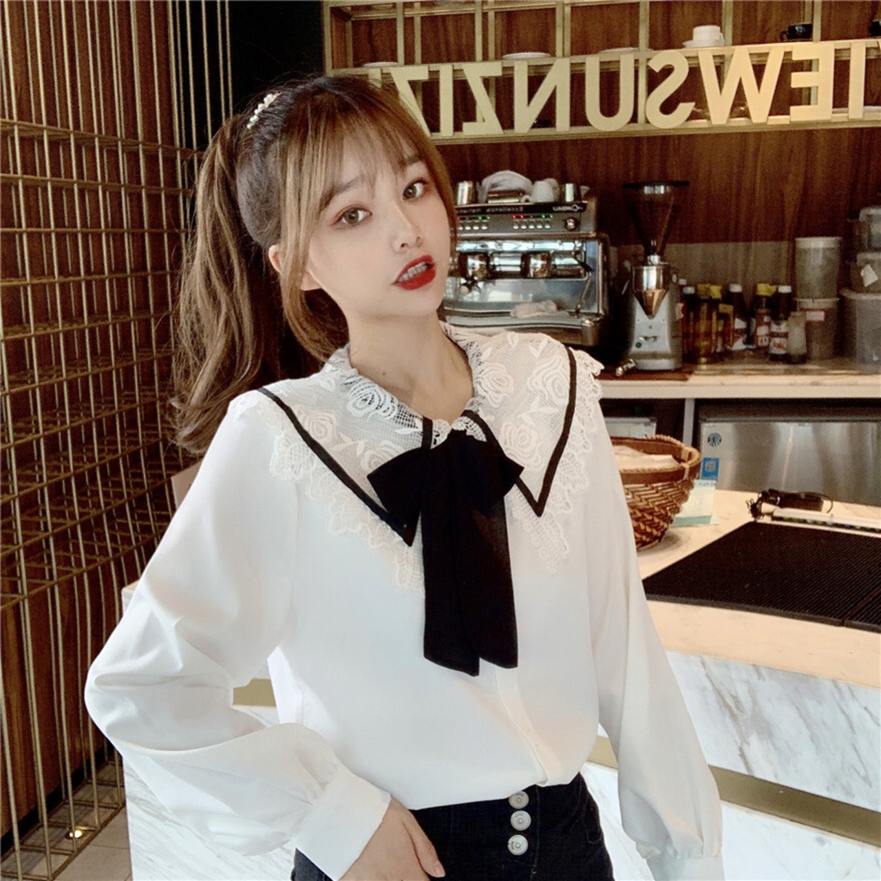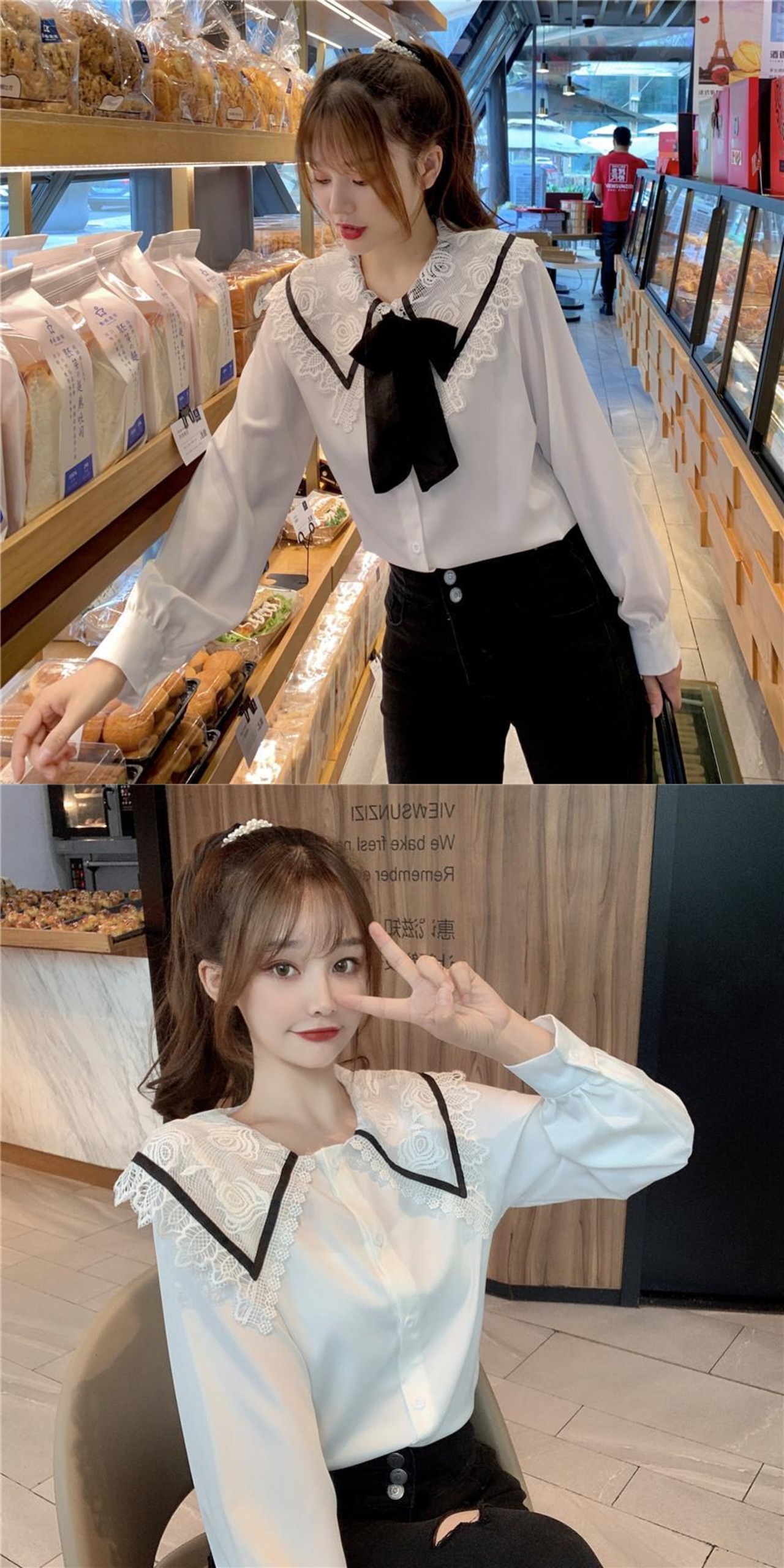 レースカラーリボンホワイト 白シャツ レディース ロング マキシロング丈 マキシ丈 かわいい 可愛い ガーリー 大人可愛い 大人かわいい フェミニン 大人ガーリー 女性 レディース ゆめかわ10601361411 | nice import1